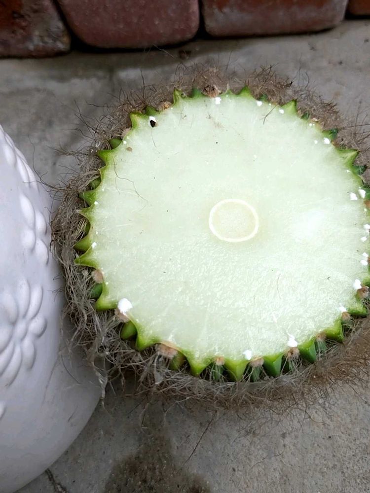 凄く綺麗にカット出来ましたね😆ホント瑞々しくて美味しそう!緑だったら、キウイフルーツだね😆私が以前胴切りしたサボは子供が沢山増えたけど、結局腐らせました💦ひょろひょろしたサボも胴切りしようかな🤔