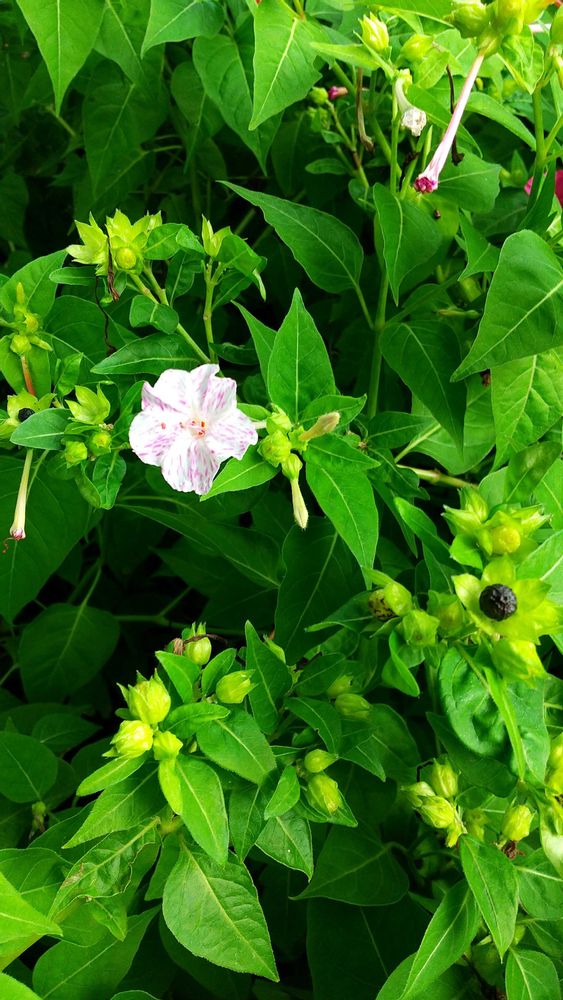 花の色の種類はたくさんある夕方4時ごろになると辺りを甘い香りで包みます。とても鮮やかな色合いの花ですが恐ろしき秘密があります❗️オシロイバナには
