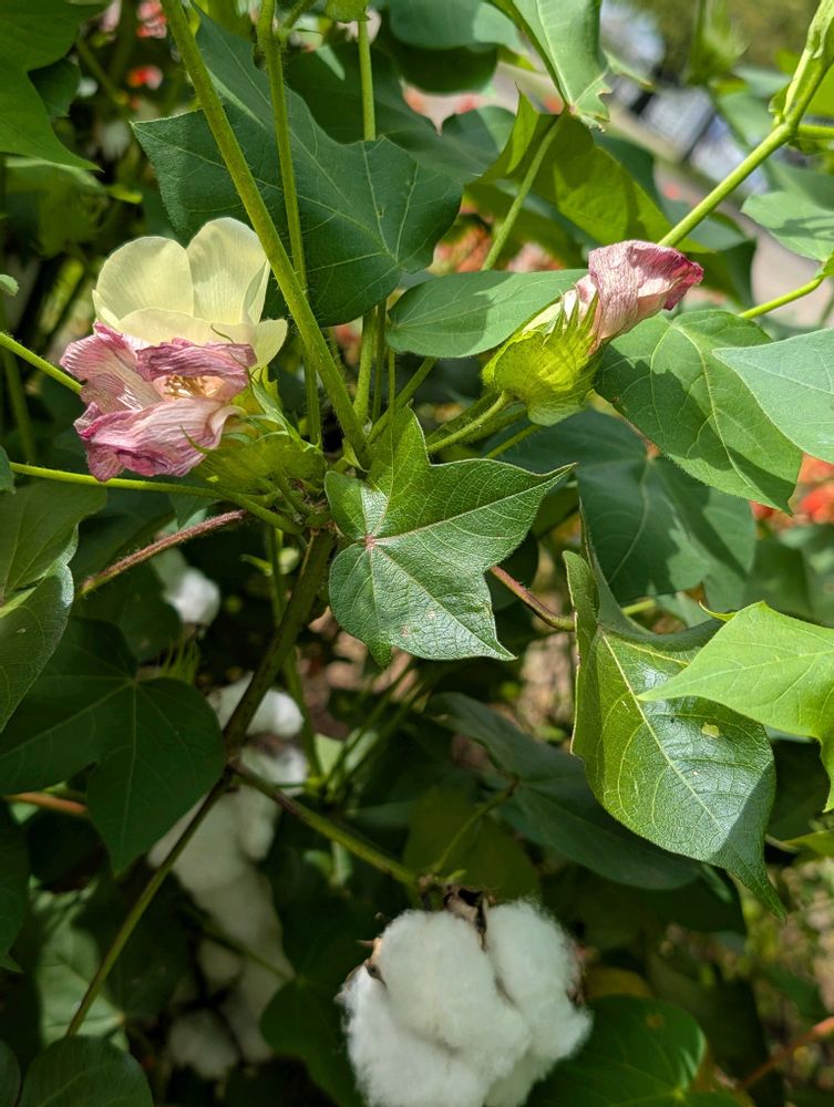 今年は成長がとっても早く、硬い硬い実がすぐに弾けて綿花になり、喜んでいたら…9月に涼しくなったらその上に枝が伸びてたくさんの花が咲き、ワタの実がたくさん付いてるよ〜😍👍️💕