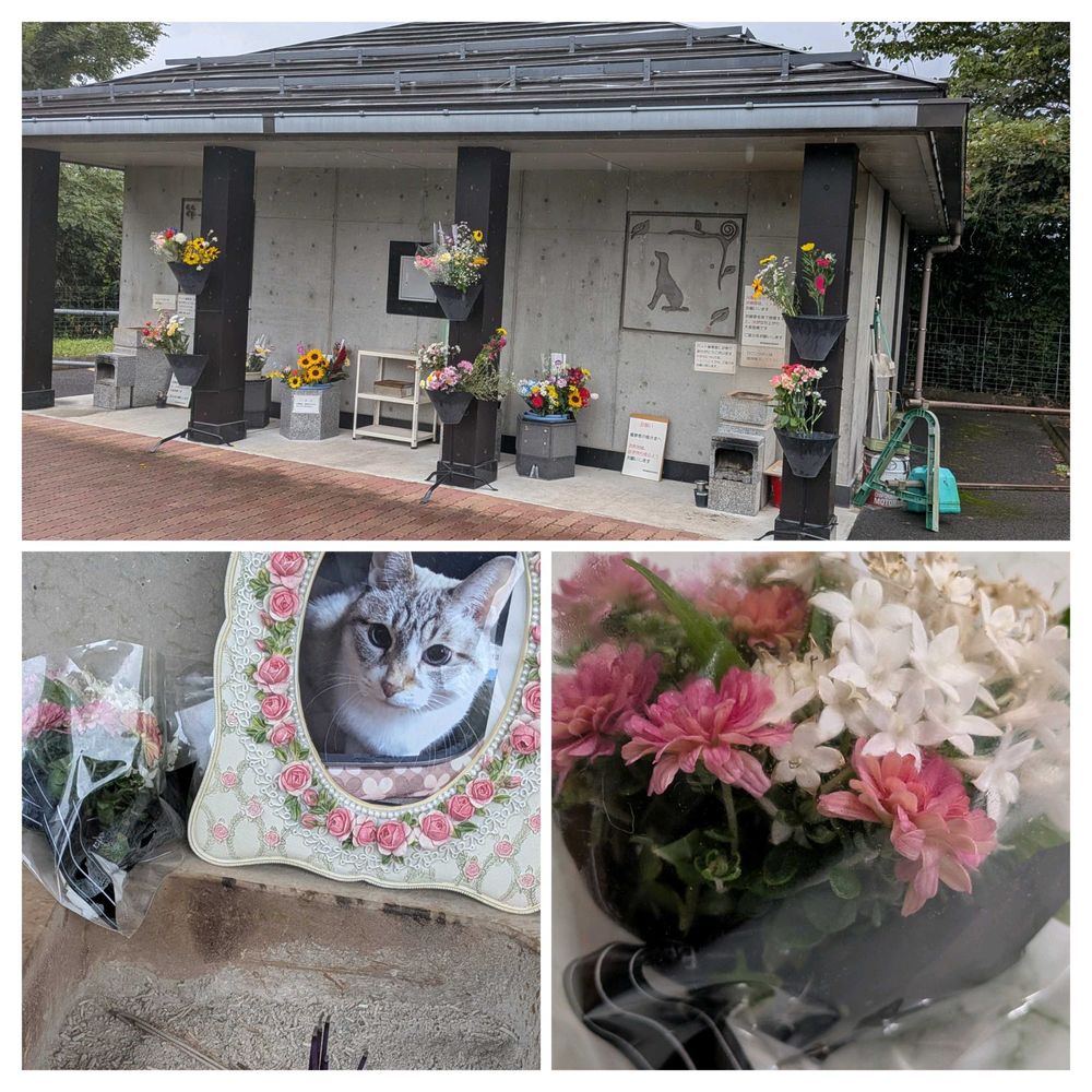 皆様素敵なお花一杯供えてありましたがうちのカルピンには少しのお花となりました😅