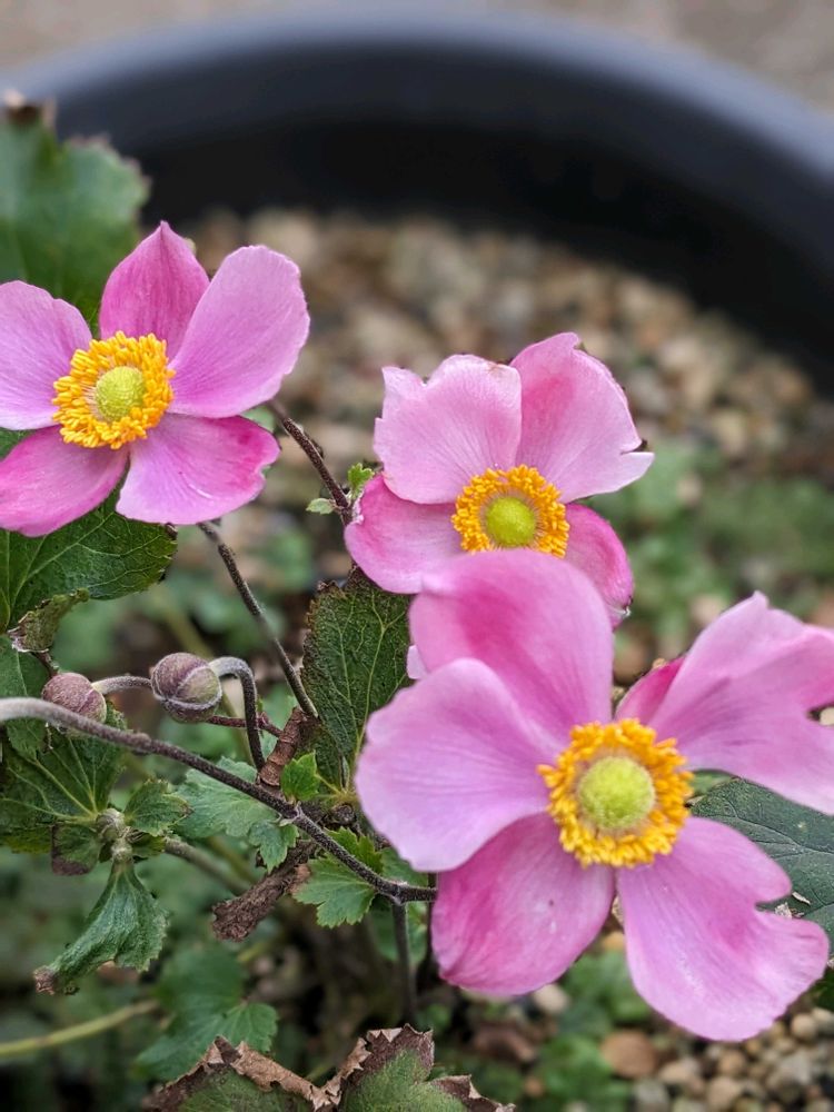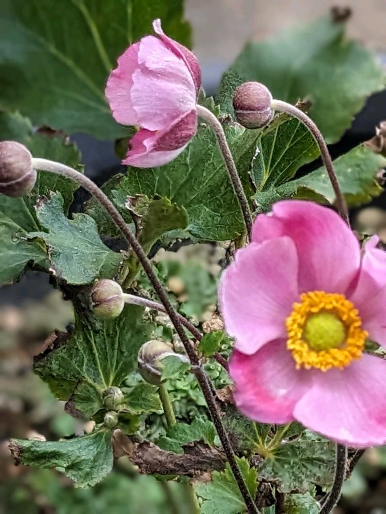鉢増ししながら育てていますが、『他で見かけるお花に比べ大きくならないなぁ🤔』と感じてて…今日、投稿しようとラベル見たら、[矮性秋明菊 ルフィア]と…草丈35㌢らしいです😅