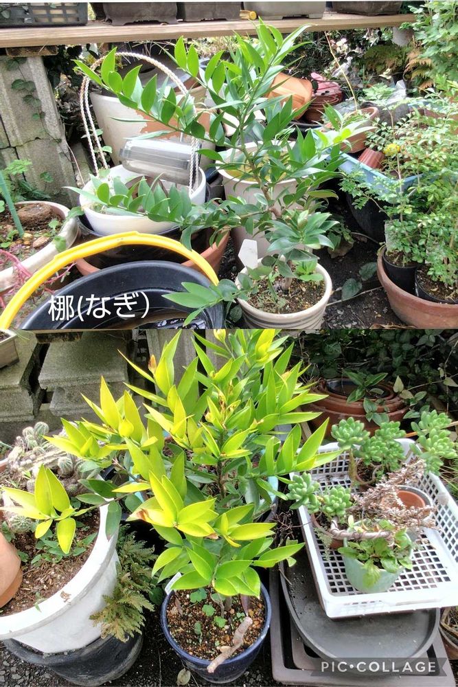 ナギは 神社とかお寺によくありますよ 葉っぱがなかなか ちぎれないので 夫婦円満 とか 縁結びとして縁起が良いのです😚 コルジリネ 今日は2つしか投稿しなかったけど 葉っぱの開いてないのと 開いているのと 4鉢もあるのですぅ🤭
