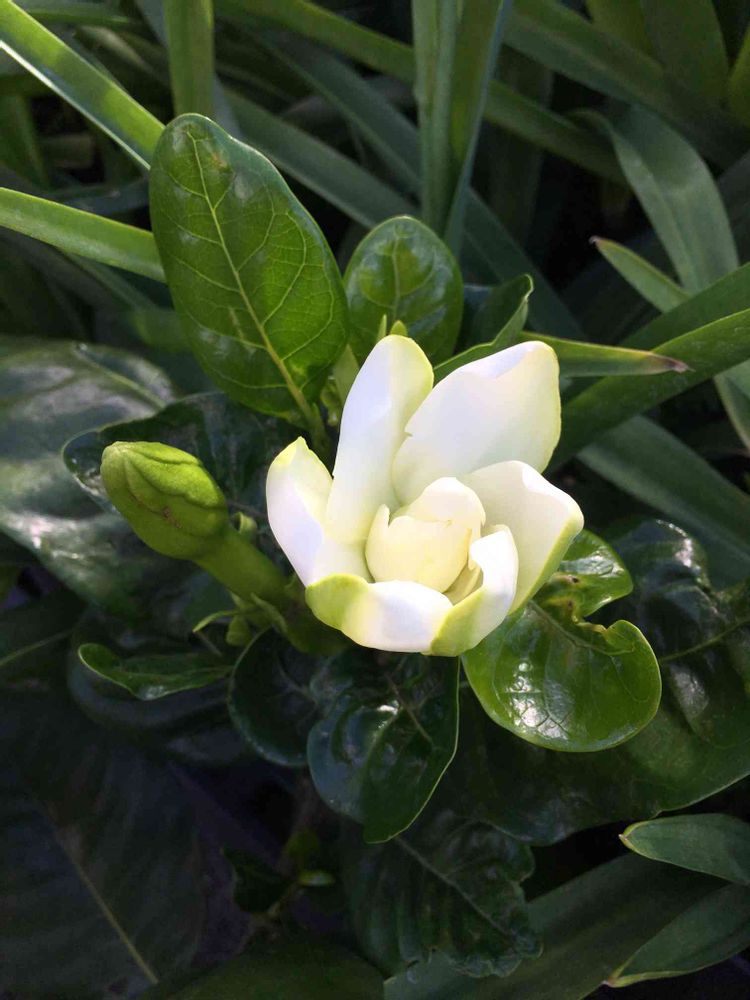 いつぞや撮ったガーデニア。葉っぱがツヤツヤして綺麗です✨