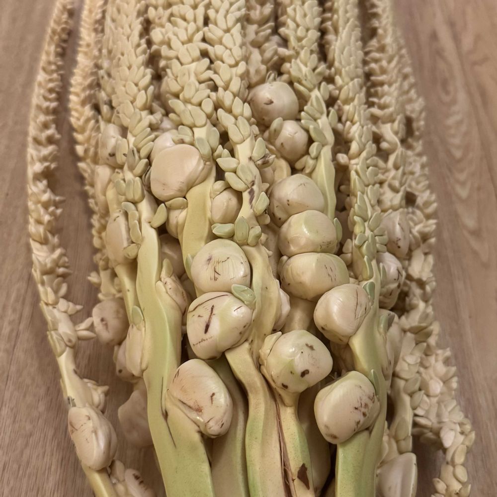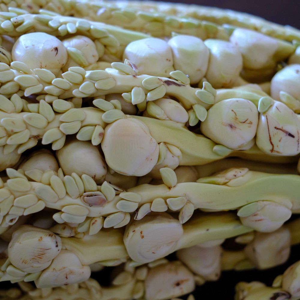 これと私が拾って来たココヤシの花芽の束(2枚目、3枚目)を比べてみると、やはり枝の下部に実がついていることから、花が受粉して実がなるのではなく、初めから選ばれし小さな実がそのまま大きくなってヤシの実になることが想定されます。🤓