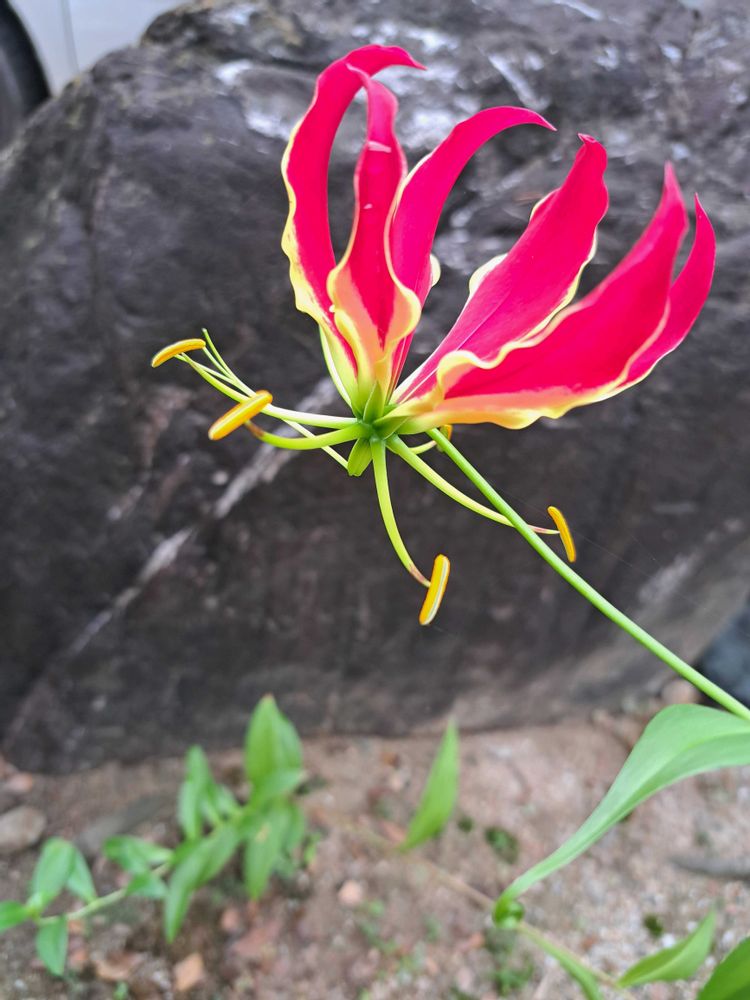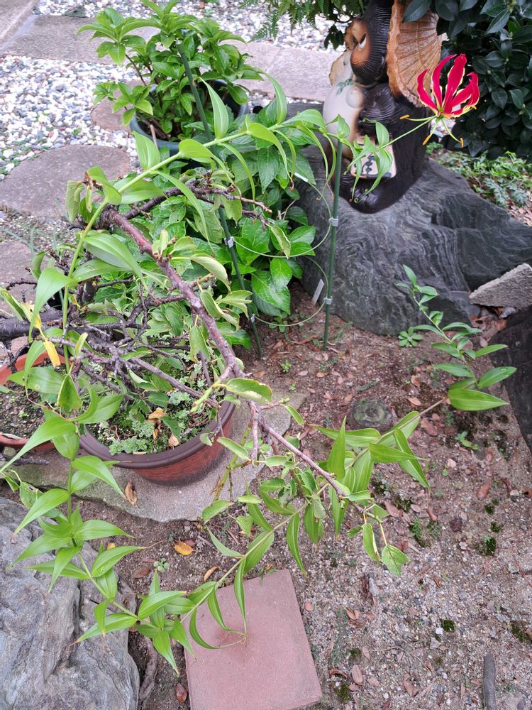 植えた覚えは無いけど、毎年ひょろひょろと伸びては 1輪だけ咲きます。とにかく、何処かに巻き付きながら伸びて行きます😅