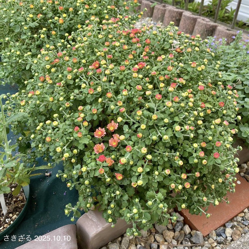 昨年花工房すながさん @flower_workshop_sunagaよりお迎えしました🌱コーラルさん株幅40cmを超えています📌③10/10はまだ蕾がいっぱいだったけれど昨晩の雨で次々と開花中です🧐✨満開はいつになるかな〜楽しみです🐒🎶