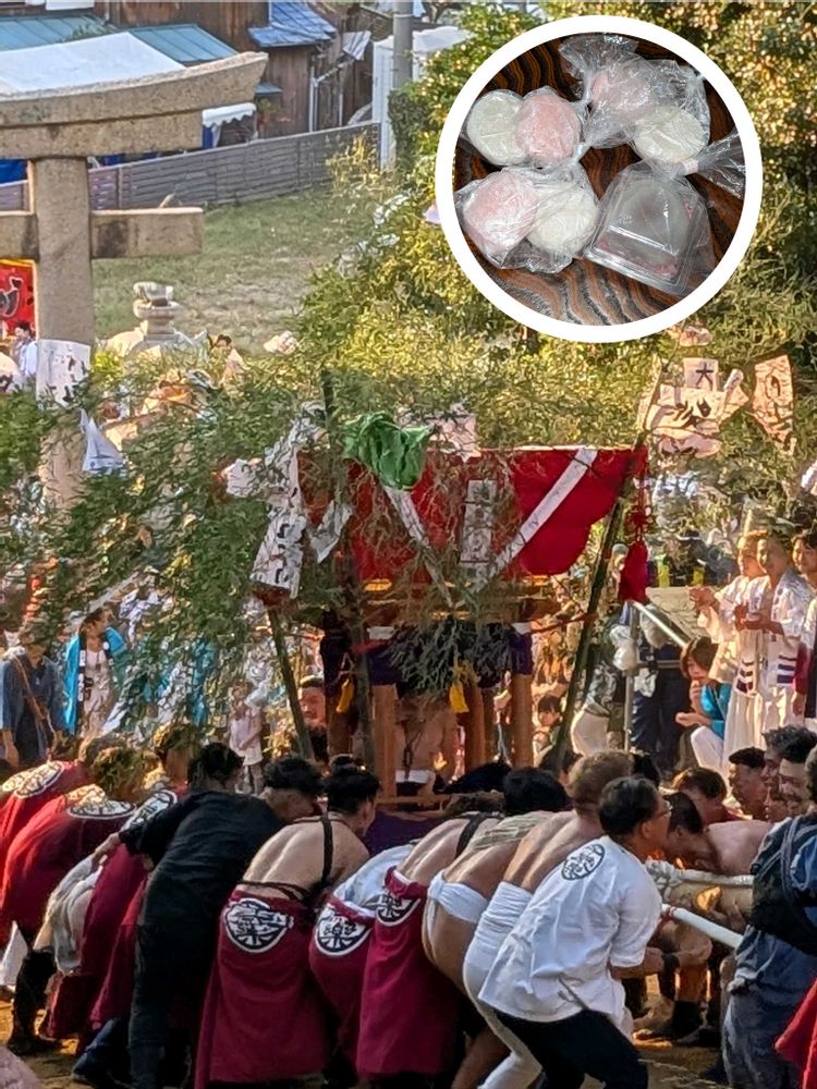 児島のお餅屋さんの尾道屋&フルーツ大福の甘月堂の有る地区なので、餅撒きは盛大なの⤴️⤴️