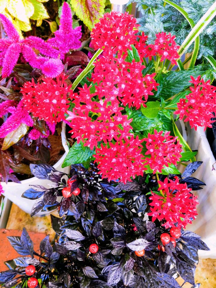❷普通のペンタスと観賞用トウガラシブラックパールの実が赤くなって来ました☺️
