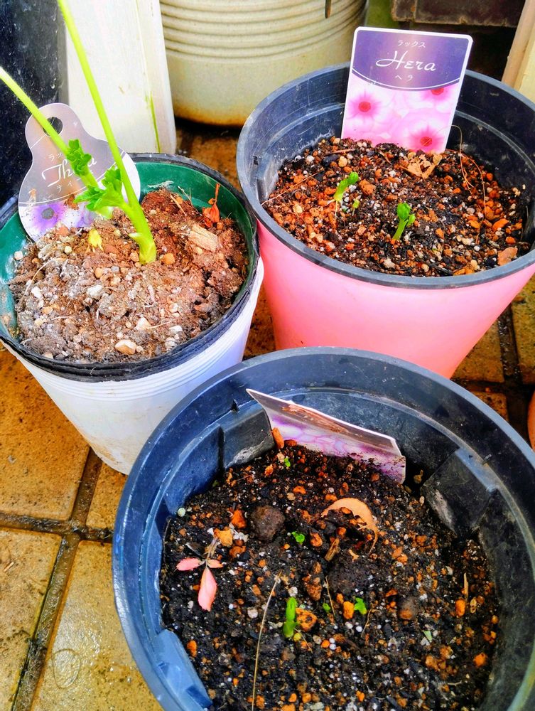 ❺ラナンキュラス ラックス ティーバーとヘラが芽吹いて来たので水やり開始🌱