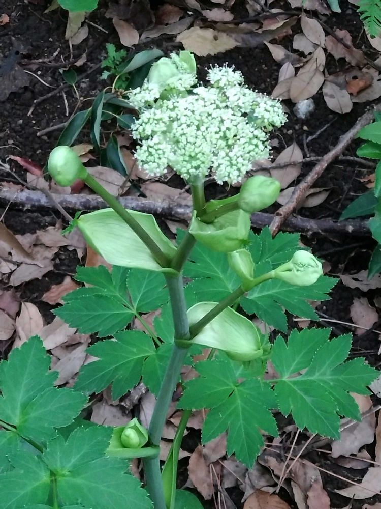 ②は、セリ科のお花だろうとは思うのですが、候補をしぼりきれず、ご存知の方、教えてください。1輪だけ日陰で咲いてました。