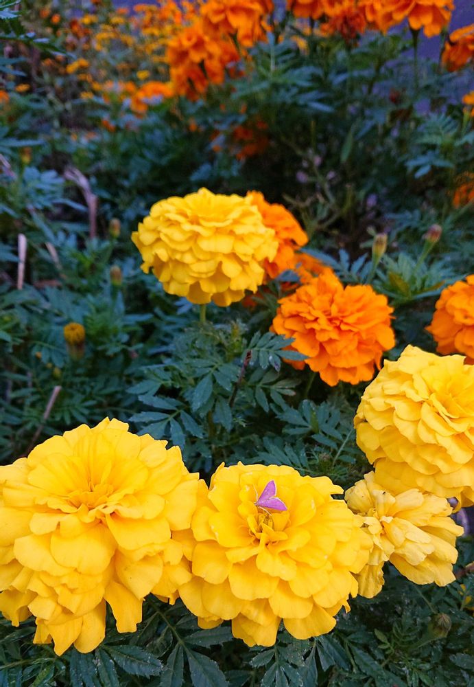 マンションの花壇の「マリーゴールド」🌿🧡