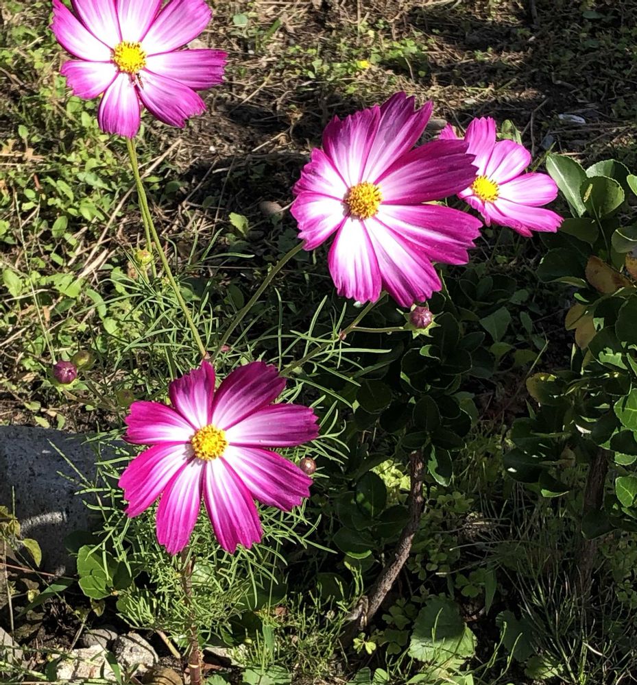コスモス突然変異⁈植えていたコスモスが二色に。可愛らしい😊