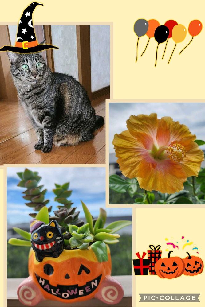 おつかれさま😊🎃の容器に多肉可愛いね~♥️ なんかミーちゃんスリムになった?👀‼️