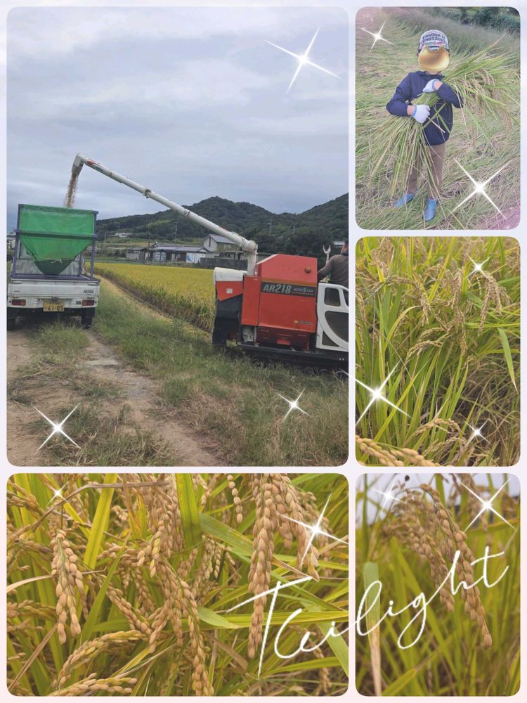 孫もお手伝いした様で〜頼もしい跡継ぎが〜頑張ってマス~✌️👌👍新米が早くも出来た様でㇲ〜新米も~まだまだお高くて~手が出ましぇ~ん😱😫😵😰