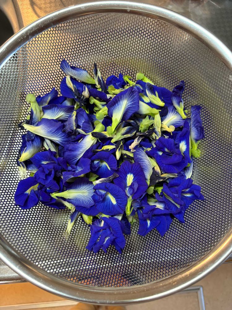 バタフライピーだけでは豆臭いからレモングラスでいい香りになり、色はブルーだからレモンなど柑橘類を絞ったら紫になるので 色で楽しんでくださいと🎁