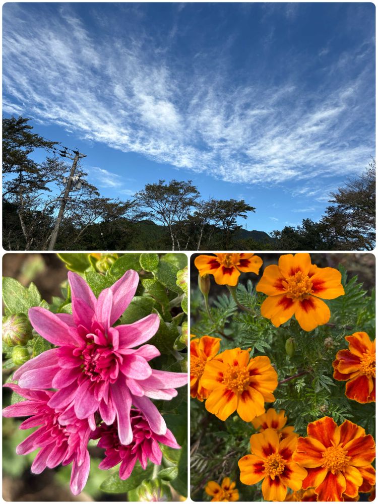 みかんさんの小菊,マリー ゴールド,朝の空.の投稿画像