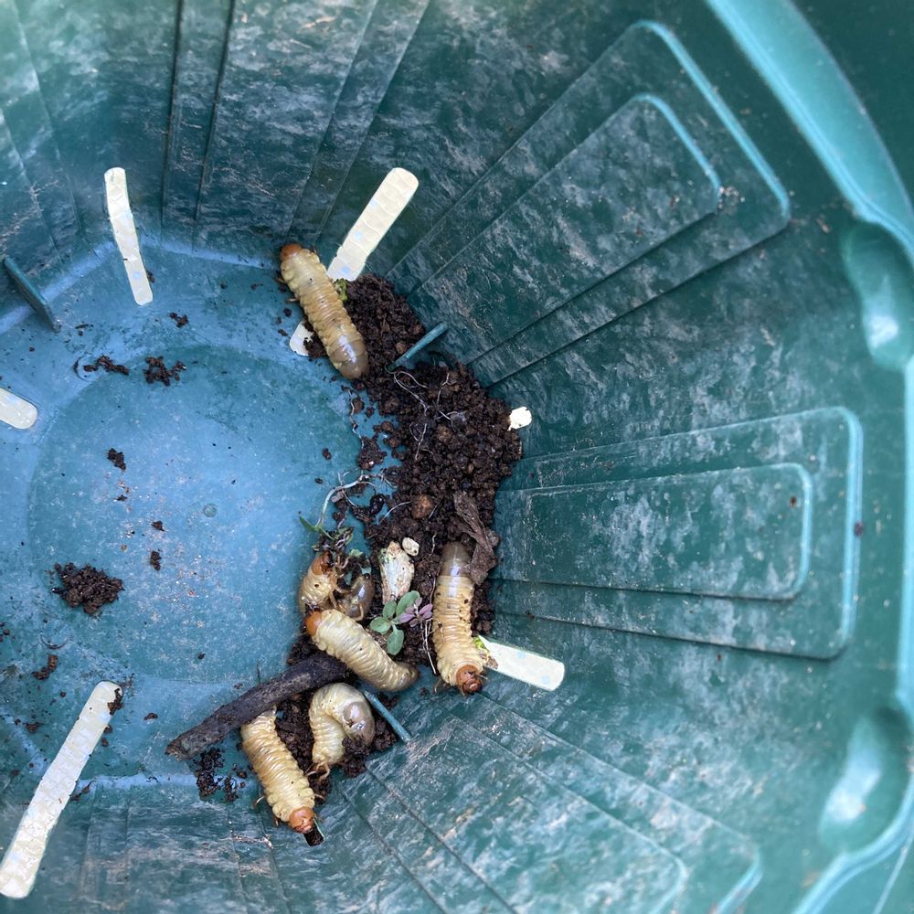 土の乾きが悪いなぁとも思ってはいたのですがらバラを育てて始めてから一度もコガネムシの幼虫がいたことがなかったので油断してました😢