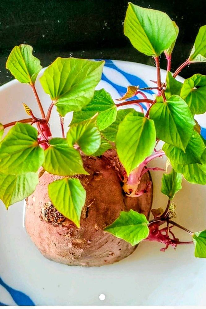 サツマイモの切れ端を水を入れた皿に乗せていたら、とても瑞々しい葉っぱが出てきて嬉しかったです。
