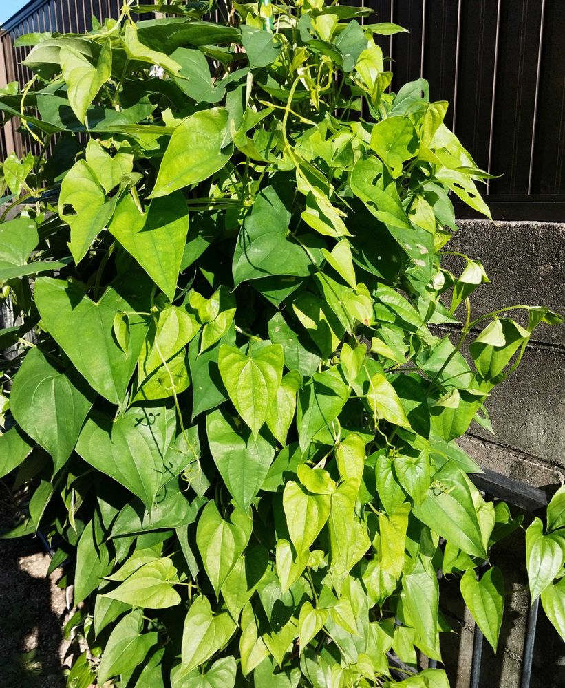 玄関アプローチ,山芋の葉,丸オクラの花の投稿画像