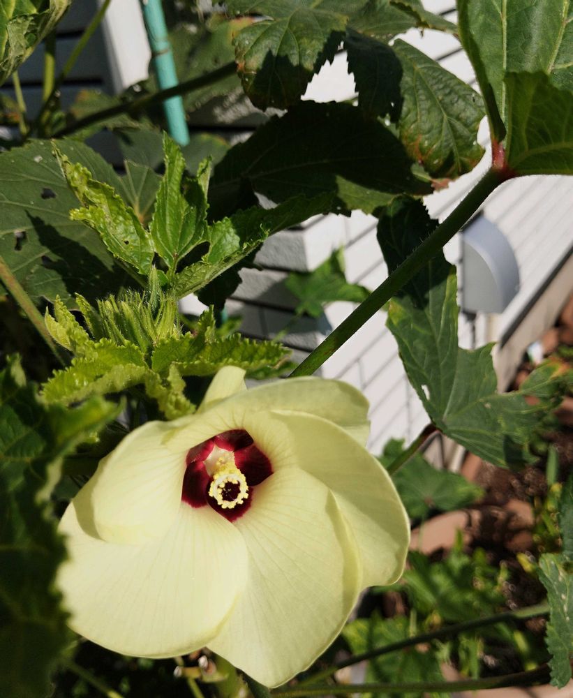 空花(そらは)さんの玄関アプローチ,山芋の葉,丸オクラの花の投稿画像