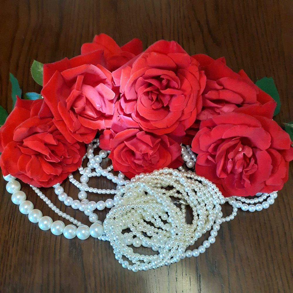 🌹真っ赤なバラとパールって合いますね😸💕