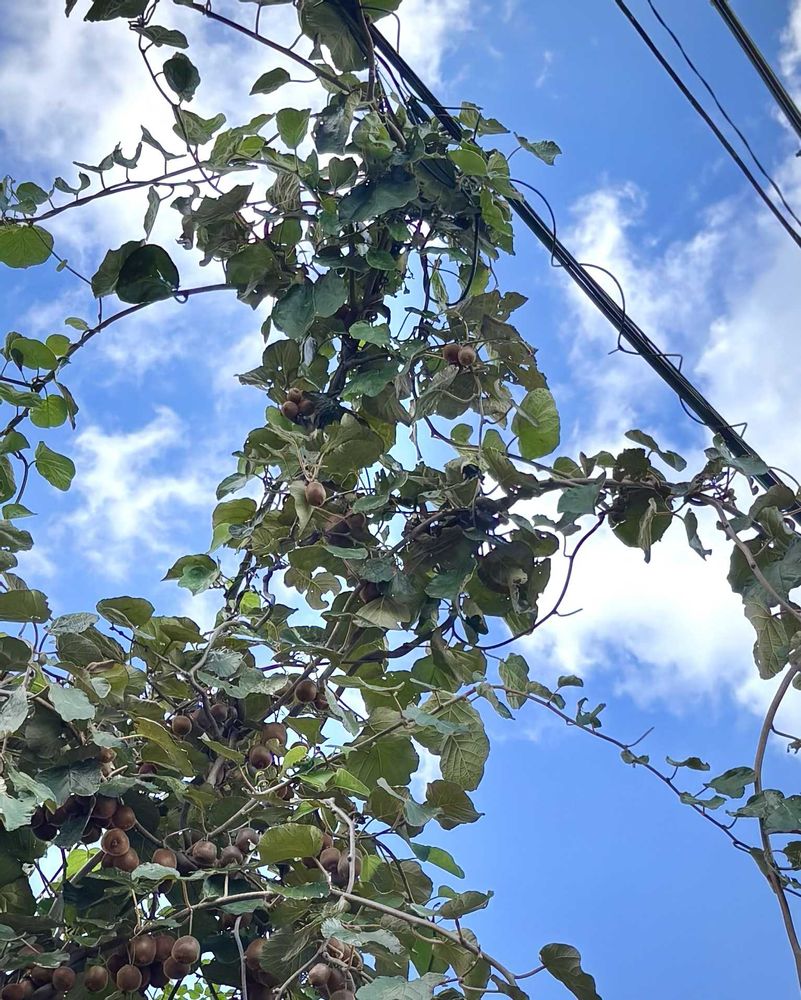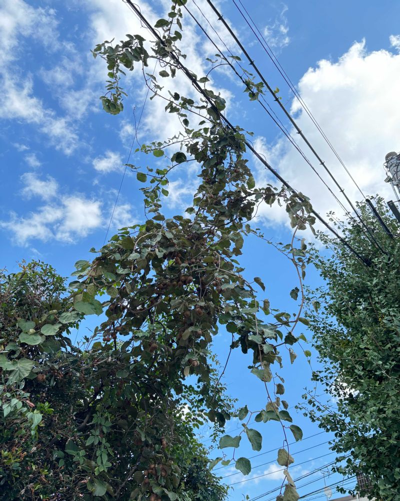 葛のツタかと思ったけど、ちょっと小ぶりなキウイが鈴なりですよ〜🥝🥝🥝🥝🥝🥝🥝