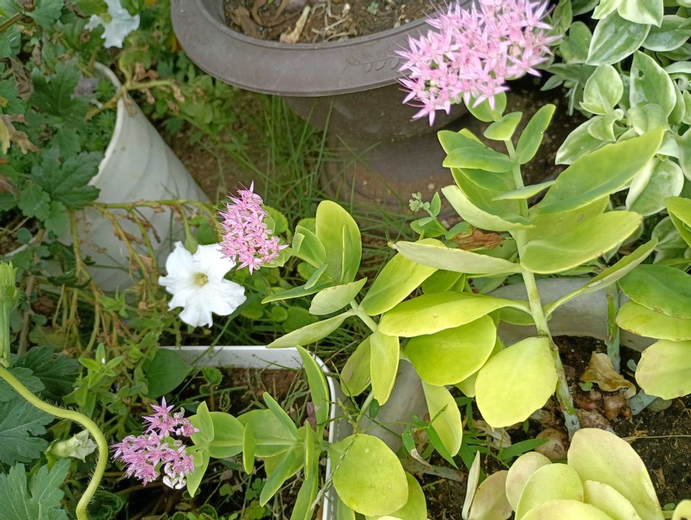 ア-さんさんのベンケイソウ,白のペチュニアの投稿画像