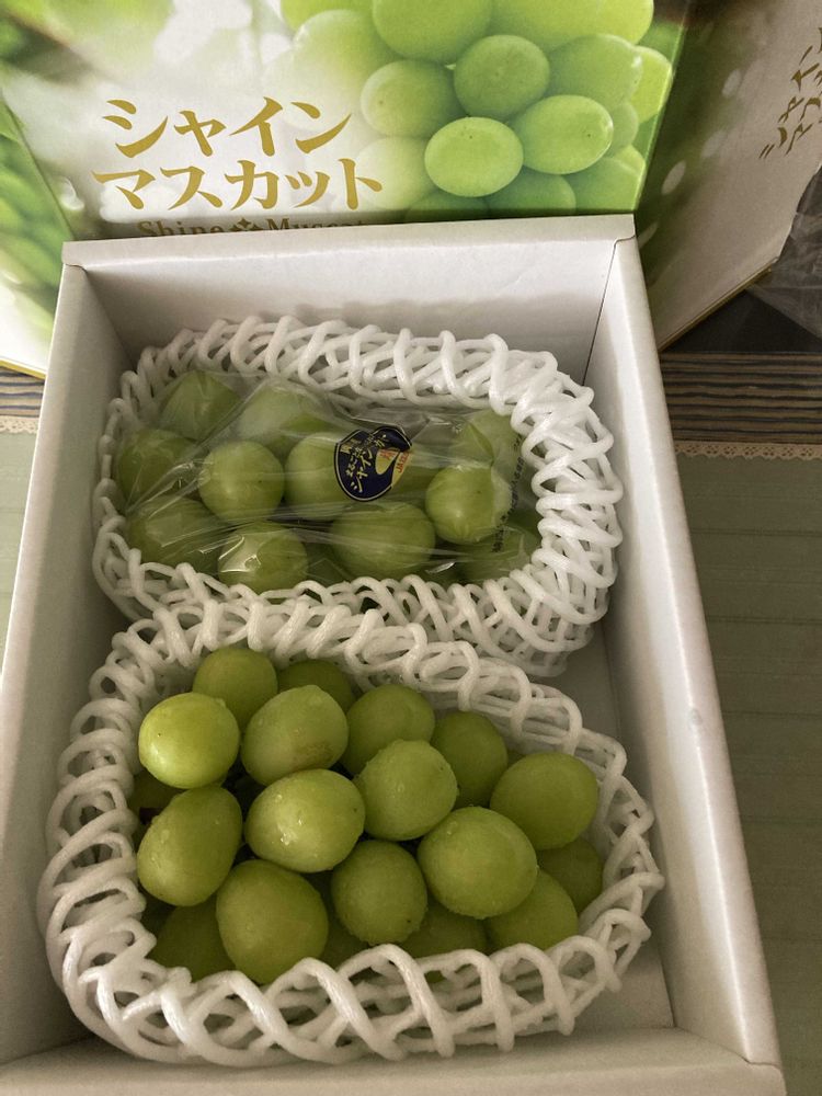 忘れた頃に 嫁さんが 何か届くと思いますよーー、、、、、、と待ってたら本日シャインマスカットが届きました