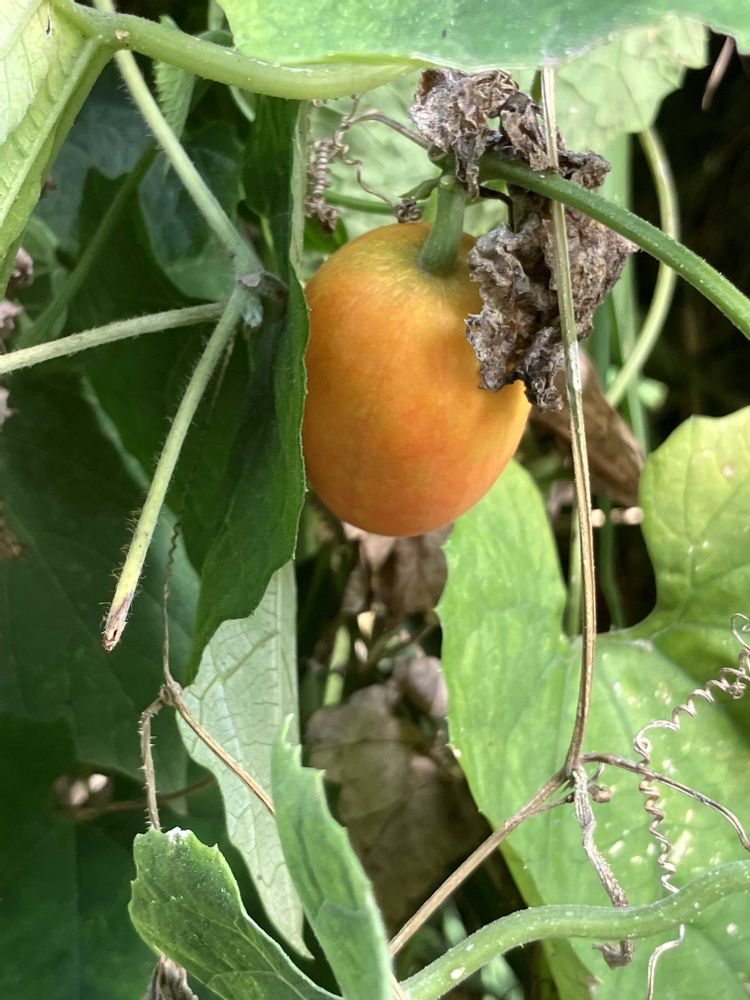 カラスウリ、ちょうど色づいてきたのでパシャリ📷しました