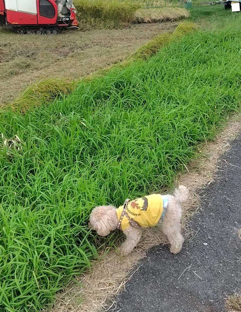 ③④🐕️σ(゚∀゚ )オレん家周りでは、稲刈りが進んでるワン🌾。