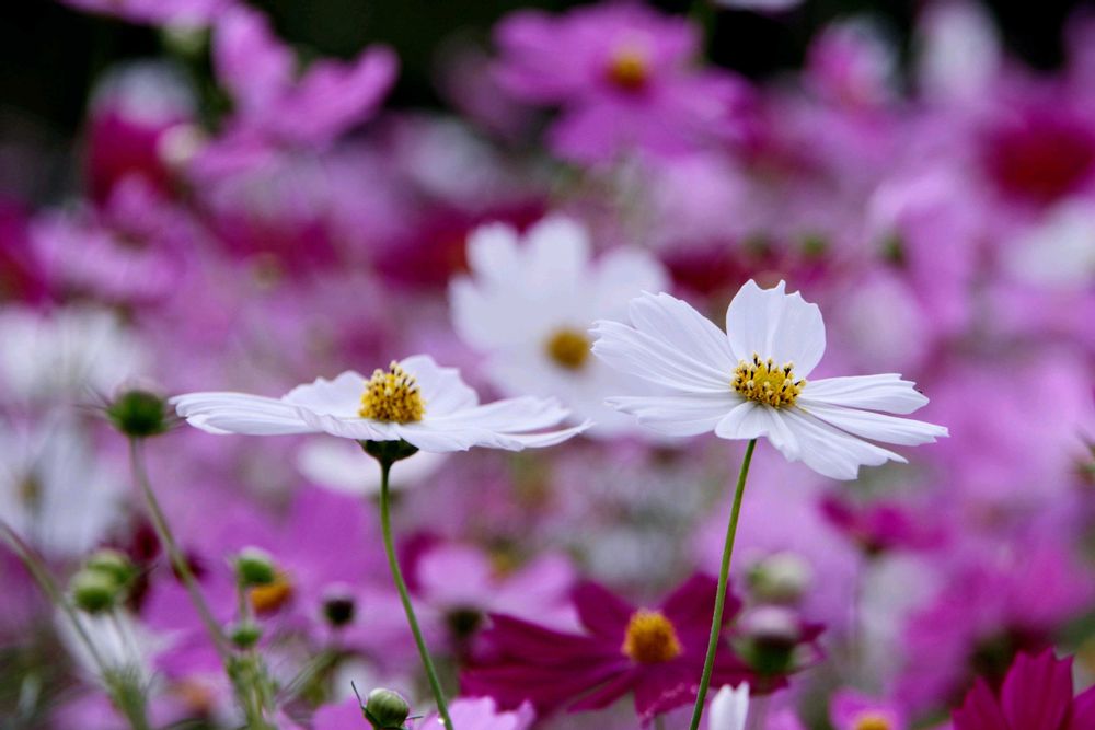 コスモスの花を眺めていると、風の姿を現すように、自然の秩序に従って、美しくし動いていました