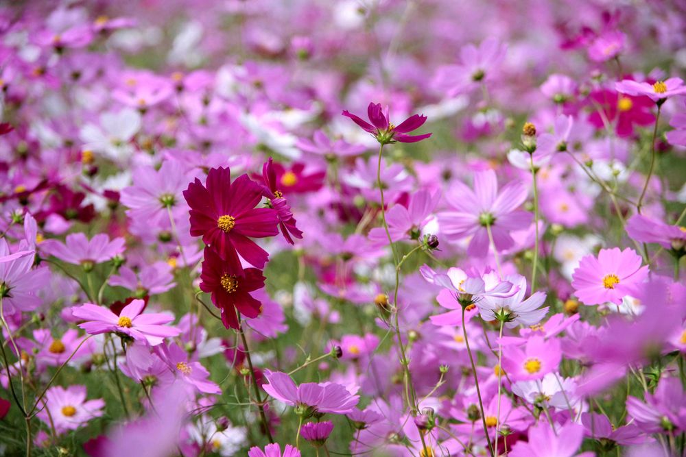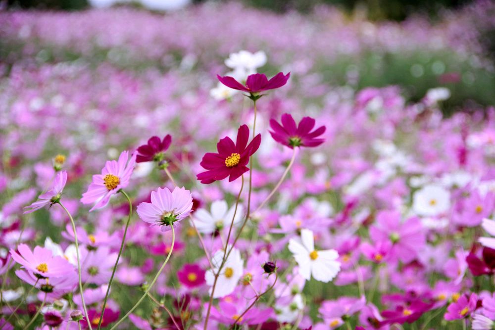 今年も広々とした畑いっぱいに美しいコスモスが咲き乱れています
