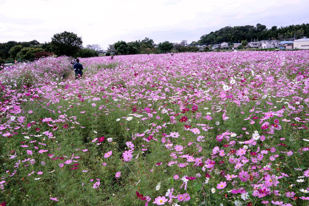 《清瀬金山緑地公園に沿ったコスモス畑》