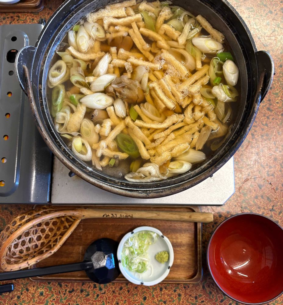 このお鍋の中にお蕎麦を網のかごみたいのに入れてしゃぶしゃぶして食べます(*´༥`*)