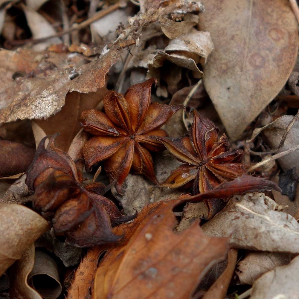 シキミという言葉を前方から歩いてくる人の会話のなかから聞こえてきて、そこへたどり着くと艶やかでぷっくりと結実したシキミの姿がありました。美味しそうなのに有毒、花言葉では猛毒とも表され、地面に落ちた茶色い実を見ているだけでも眼が充血してしまいそうな錯覚をおぼえました。