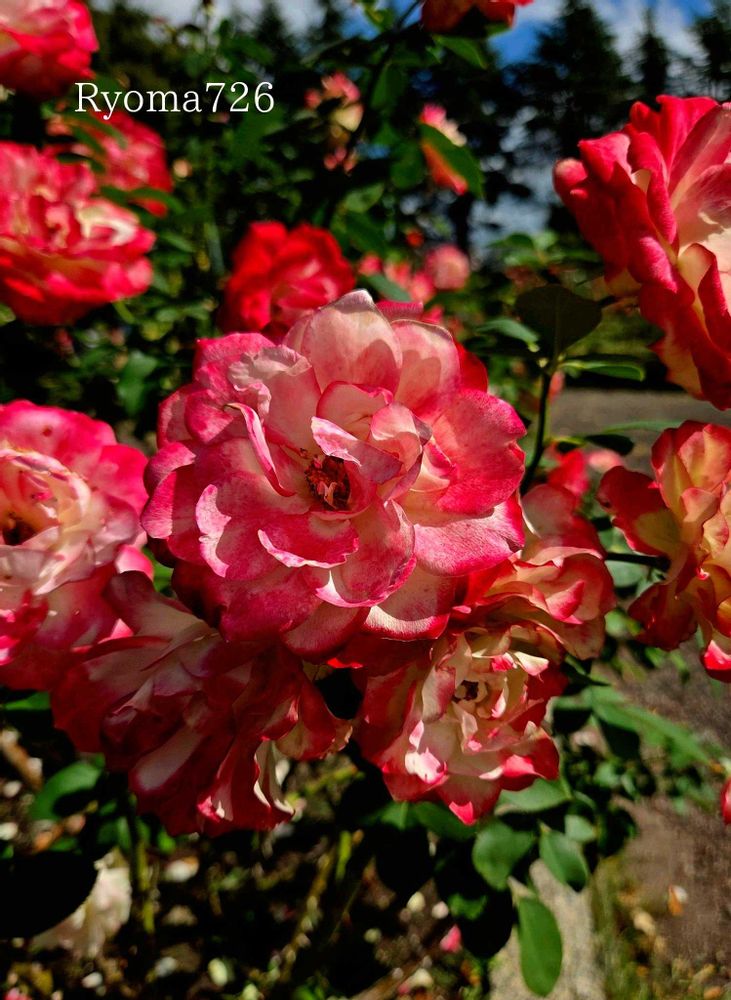 白地に赤の縁取りのある ジュビレ デュ プリンス ドゥ モナコが咲いていました🌹