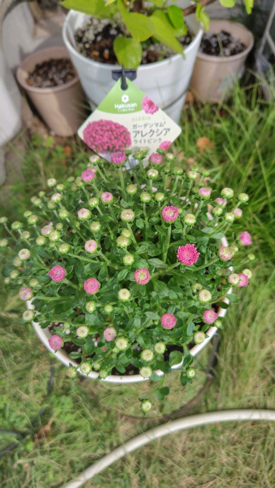 昨日、ホームセンターでガーデンマムアレクシアが販売されてたので見たら、ホワイトとイエローしかなくて、税込398円でした😱