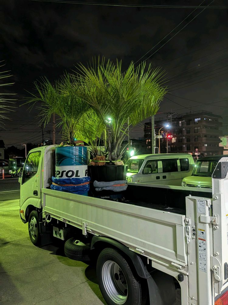 ドラム缶のヤシの木の嫁入り作業は夜だったんですね🌌