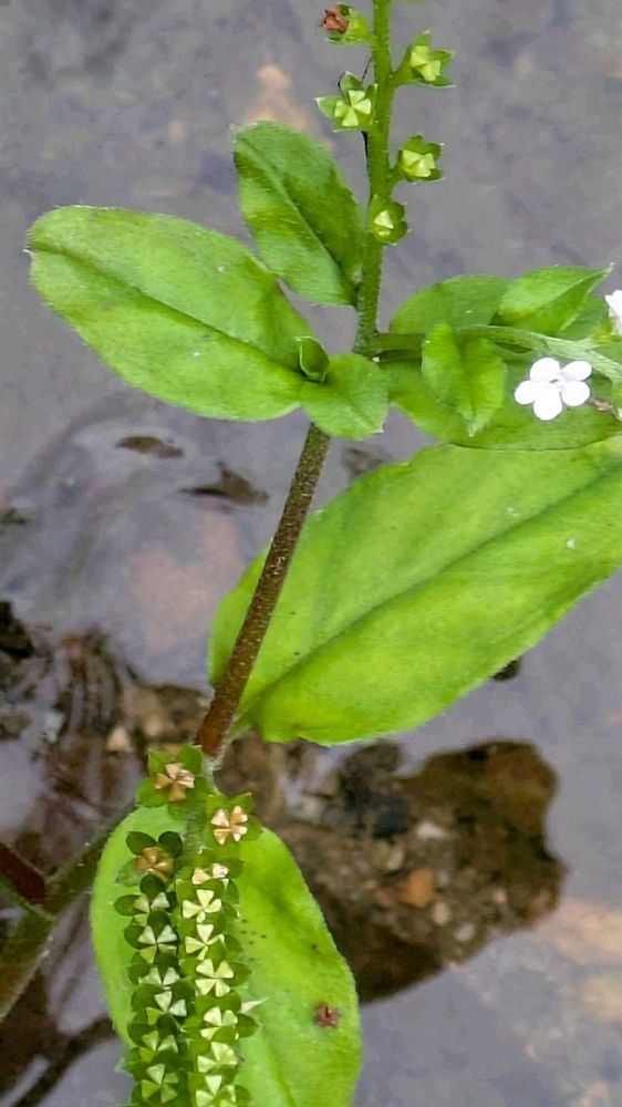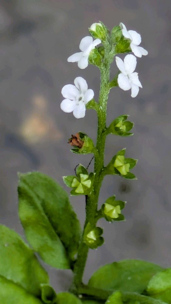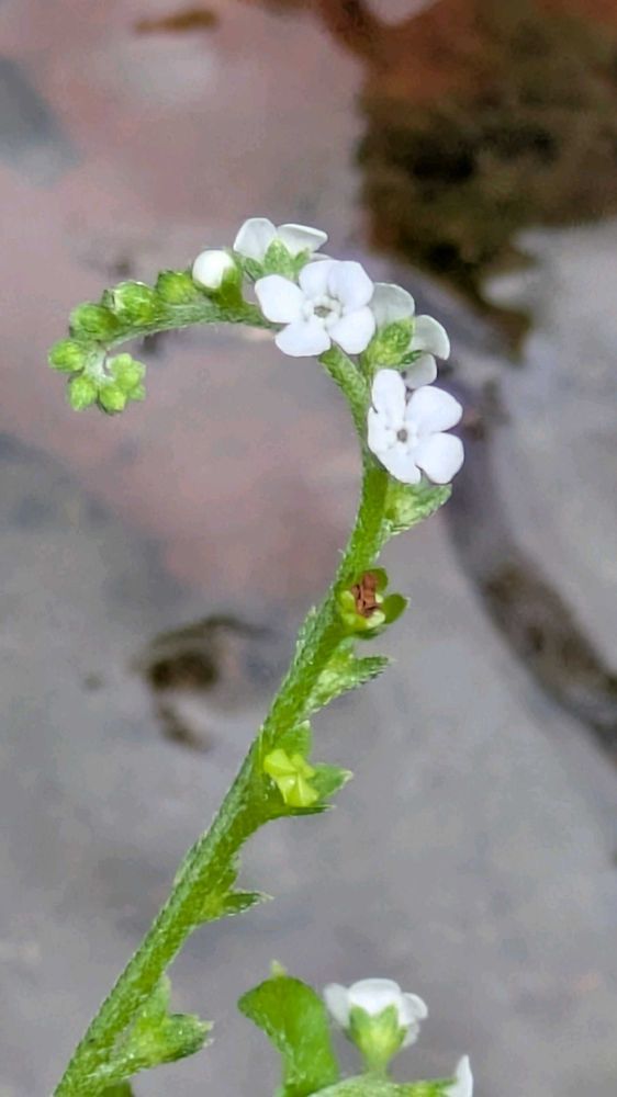 花期が長いといえばこれもそうで、初夏から水辺でずっと目にする(๑´`๑)♡ キュウリグサの仲間で、同じように花序の先が渦を巻き、下から咲きあがるにつれて伸びてくる🌀