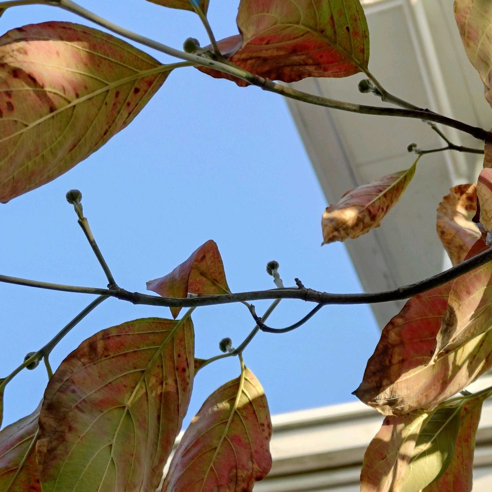 おはようございます〜我が家の紅葉🍁〜ハナミズキの葉〜でもその散る葉と同じく沢山の蕾が付いている②