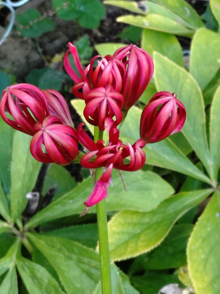 白花ヒガンバナは咲いたのに、八重咲きヒガンバナはこの蕾のまんま開かなかった〜😢