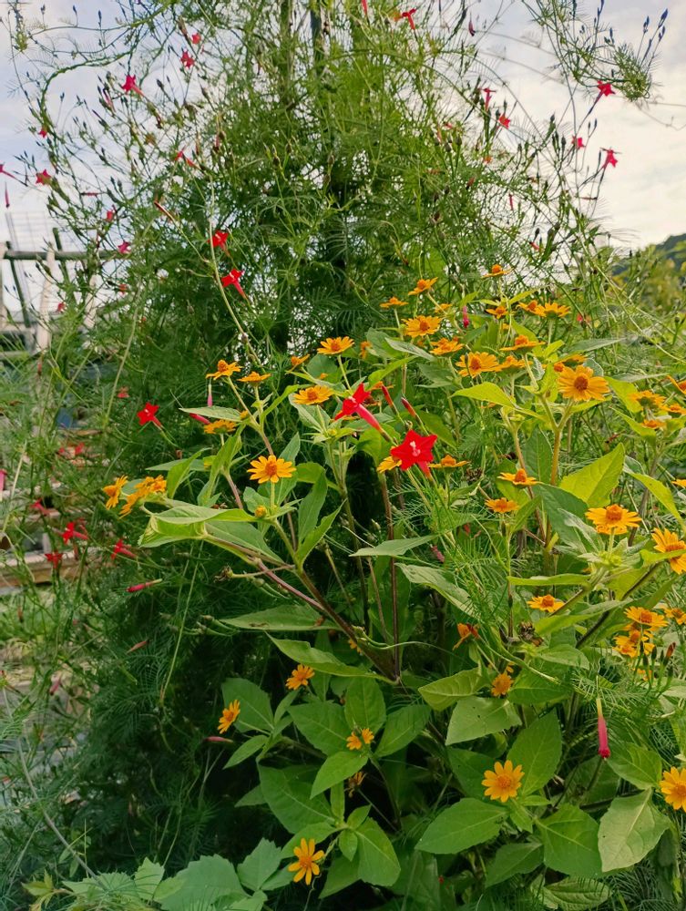 最後はルコウソウに負けないでこぼれ種から咲いた黄色い花(名前分からない😅)