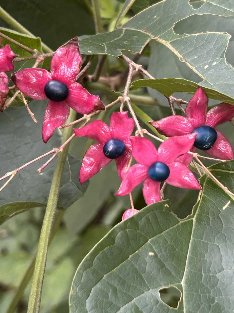 たしかミッキーマウスは緑から黒に変わっていくのが見えるけど、クサギは熟す頃開くみたいだよ。