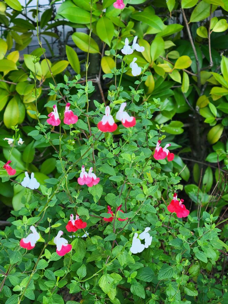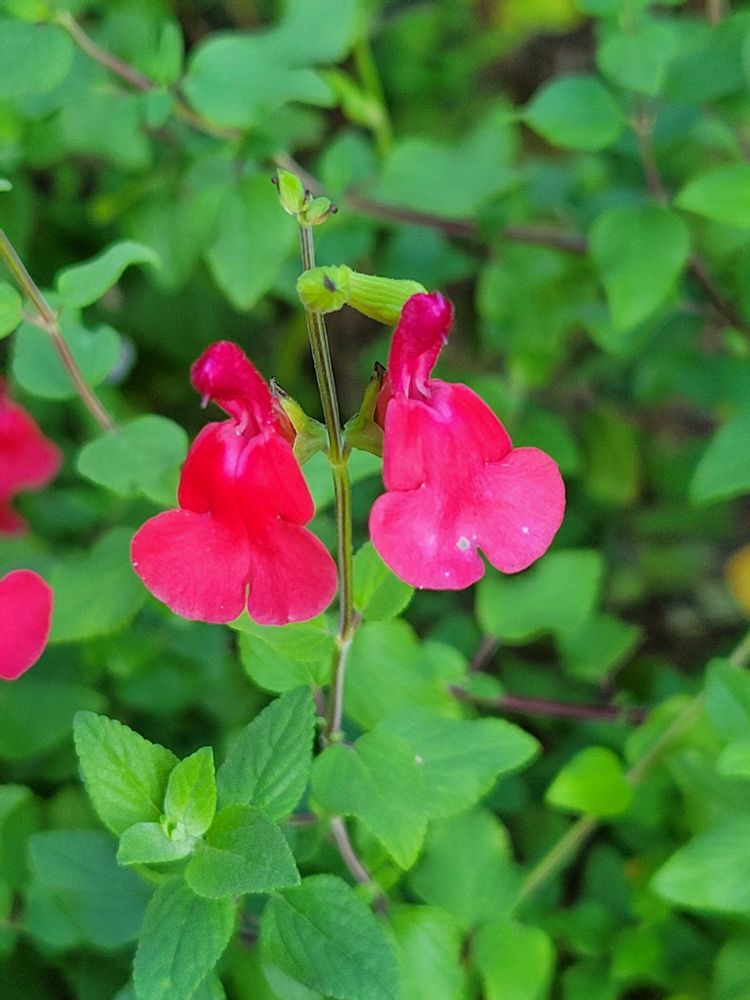 チェリーセージさん、よく咲いてるのは挿し木からの2世の方で、親株はいまいち元気がありません😥