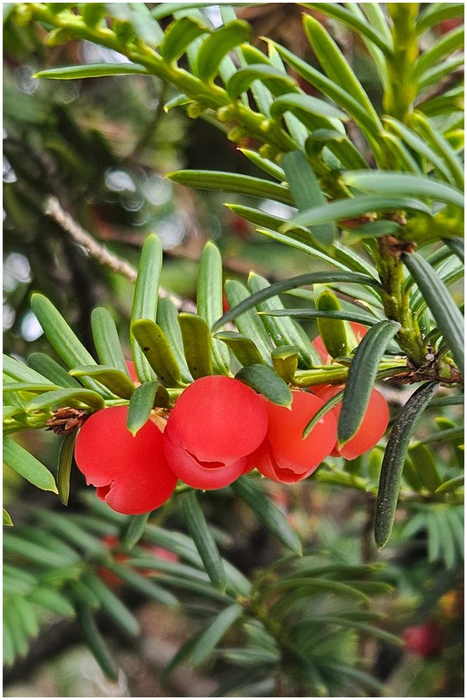 イチイ雌木が🔴実をつけるんですね〰観たこと無かった😆 可愛すぎ〰️♥ෆ╹ .̮ ╹ෆ♥💓✨