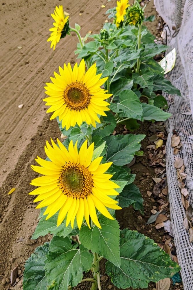 この農地はひまわりの色んな姿を楽しませてくれます。