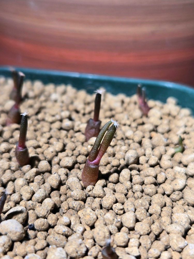 実生の黒牡丹、大きいもので1cm 二本目の枝が出ています
