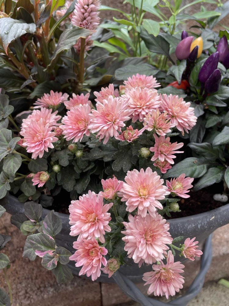 寄せ植えはあまり得意じゃないけど、すてきな色のセロシアやマムがあったので秋っぽい寄せ植えを作ってみました🎶