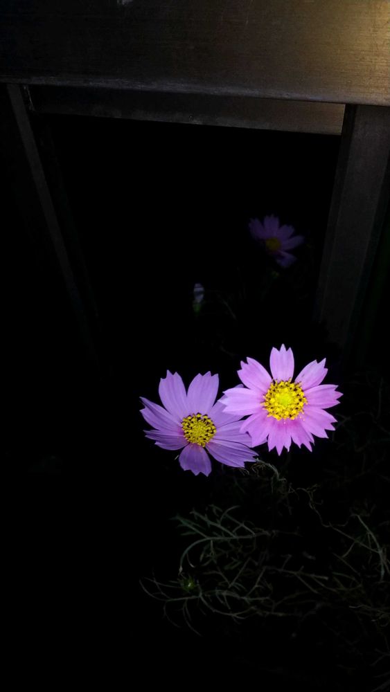今日新たに4つ目の秋桜が開花しました❗️撮影時は夜ですがスマホのライトをつけて撮影しました❗️