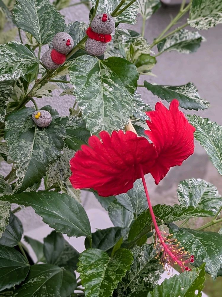 ①斑入りハイビスカス🌺さん❣️火曜日に咲いてくれたよ〜✨(*^^*)